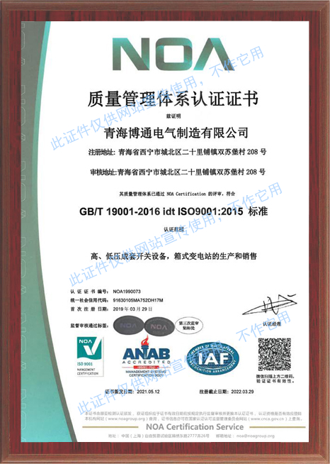 青海博通電氣制造有限公司成立于2016年。公司自成立以來,通過了ISO 9001質量管理體系、CQC中國質量認證中心等產品標準及管理體系認證。已成為一家集0.4KV~40.5KV電壓等級預裝式變電站、電纜分支箱、成套開關柜及成套配件生產、銷售為一體的技術型企業。公司位于青海省西寧市城北區。