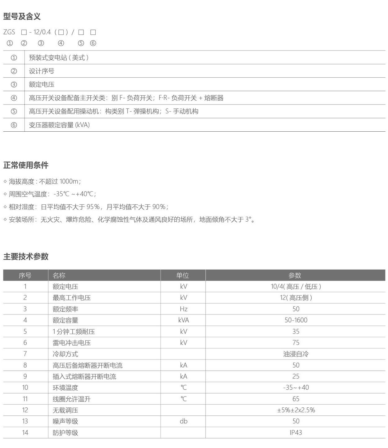 ZGS-12 組合美式預裝式變電站, 適用于 10kV 環網供電,雙電源供電或終端供電系統中,作為變電、計量、補償控制和保護裝置。本產品符合下列標準:GB17467《高壓 / 低壓預裝式變電站》DL/T537《高壓 / 低壓預裝箱式變電站選用導冊》。