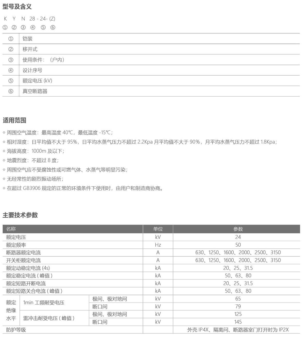 KYN28A-24(Z)(GZS1) 鎧裝移開式交流金屬封閉開關(guān)設(shè)備 ( 以下簡稱“開關(guān)設(shè)備”),適用于三相交流 50Hz 電力系統(tǒng),用于接受和分配電能并對電路實行控制,保護及監(jiān)測。