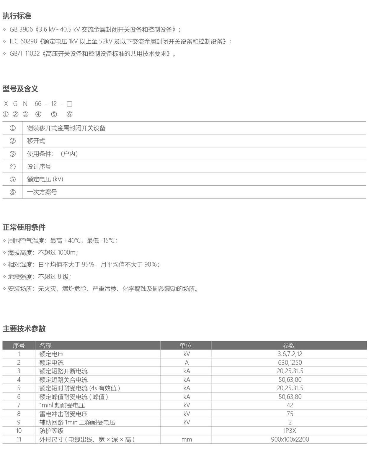 XGN66-12 箱型固定式交流金屬封閉式開關設備 ( 以下簡稱開關柜 ) 適用于 3.6~12kV 三相交流 50Hz 系統中作為接受與分配電能的裝置,適合于頻繁操作的場所和配裝油開關的開關柜改造之用。其母線系統為單母線系統和單母線分段系統