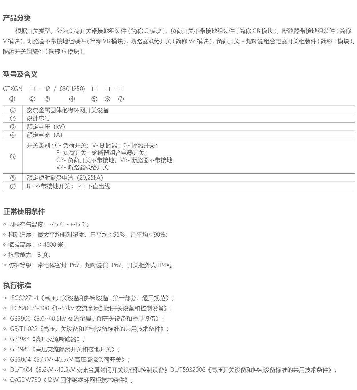 GTXGN-12交流金屬固體絕緣環網開關設備是一種全絕緣、全密封、免維護的固體絕緣真空開關設備。高壓帶電部分均用絕緣性能優良的環氧樹脂材料澆注成型,將真空滅弧室、主導電回路、絕緣支撐等有機結合為一整體,功能單元通過全絕緣固體匯流母線連接。因此,開關設備不受外部環境影響,可確保設備運行的可靠性和操作人員的安全性。
